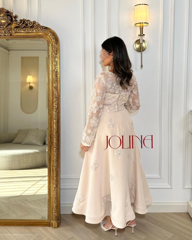 طقم بيج مطرز دانتيل بأكمام واسعة