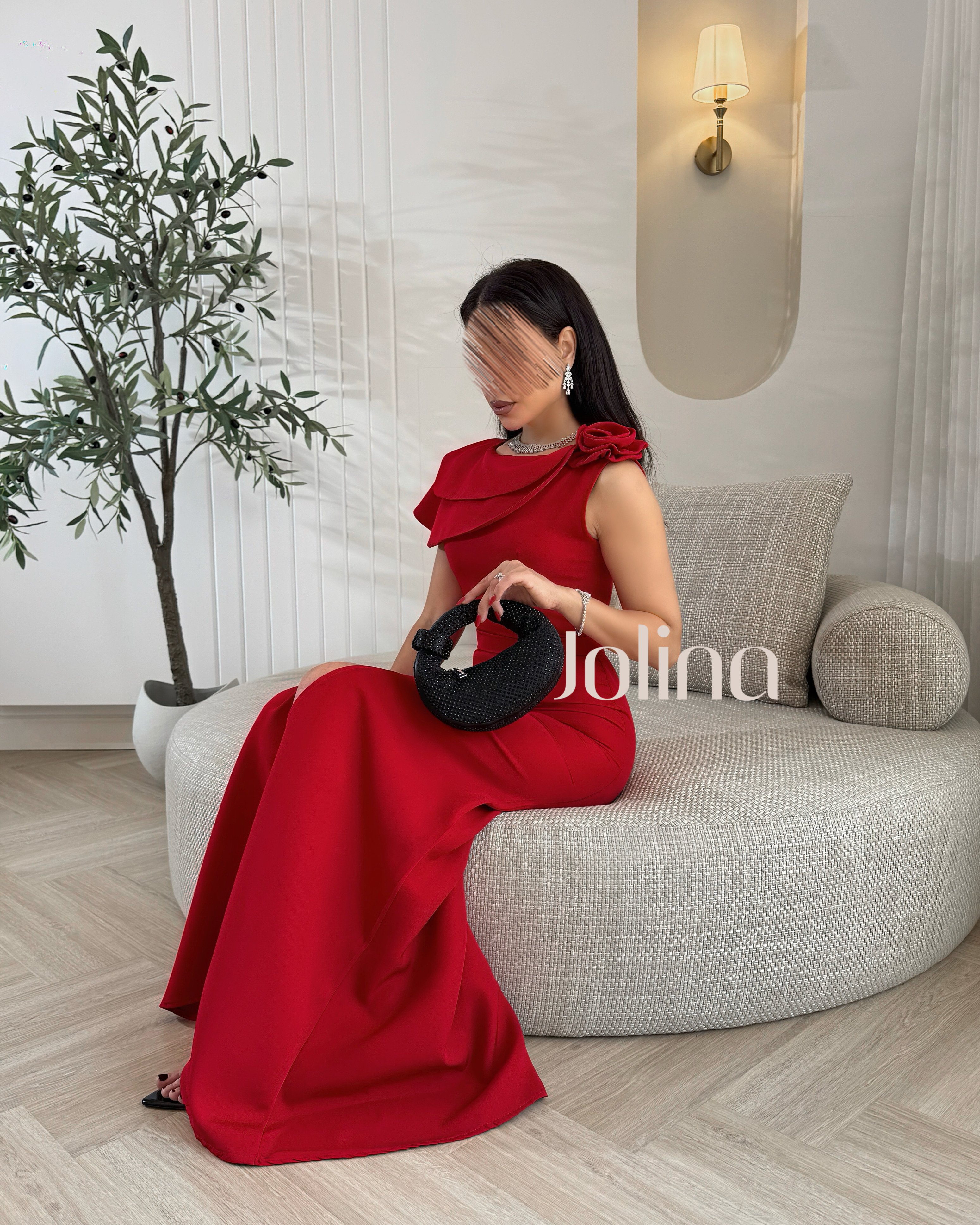 فستان سهرة طويل باللون الأحمر من جولينا Jolina، مصنوع من قماش الباربي الناعم الذي ينساب على الجسم بانسيابية فاخرة. التصميم الأنثوي الأنيق مع طيات الكتف المميزة يضيف لمسة فخامة وحركة راقية، مما يجعل كل ظهور مشرقًا ومؤثرًا.