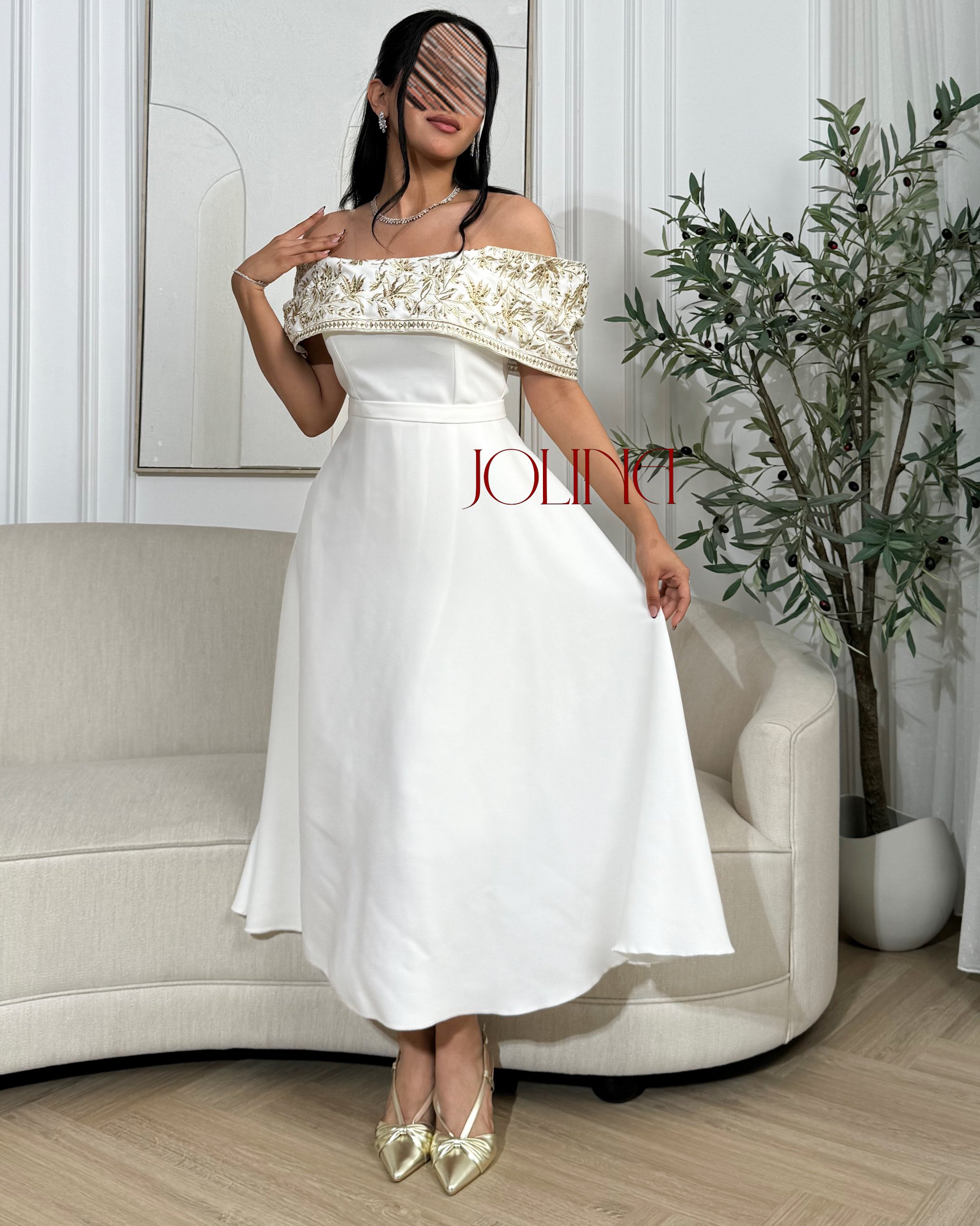 فستان أبيض مطرز بطول 50 إنش بقماش سرميك لإطلالة ناعمة ومميزة في المناسبات والزيارات.