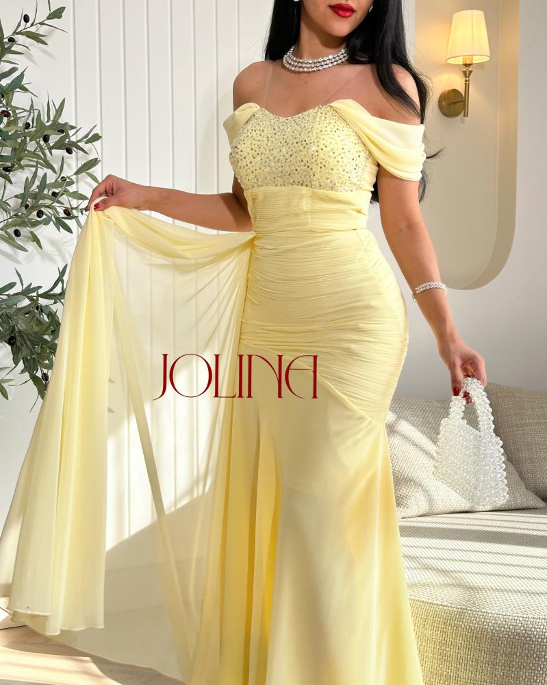 الطول : 62 انشالقماش : باربي مع اورجنزاالصدر : تطريز خرز وترتر منثورطول العارضة: 168سمقياس العارضة :سمولإرشادات العناية : غسيل بخار ( جاف ) ، تجنب استخدام المبيضات ، الكي بدرجة حرارة منخفضة